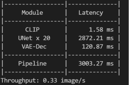 | TensorRT + Tiny VAE + UNet INT8 | 20 | 1.85 | 0.540 | 2.1× |